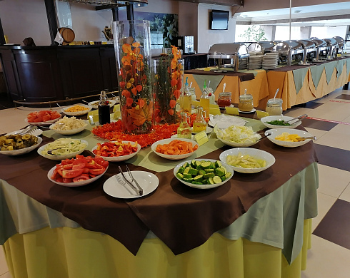 На "шведском столе" представлены не только классические угощения европейской кухни, но и легкие, очищающие блюда, идеально подходящие для сбалансированного питания. Меню кулинарных изысков дополняется сезонными фруктами и выпечкой собственного производства, которая неизменно вызывает восхищение гостей.