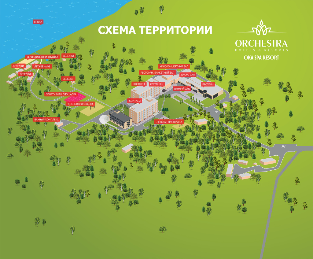 ВАЖНО! Наш отель присутствует в картах навигатора. Достаточно ввести "Ока Спа Резорт". Из предложенных маршрутов выбирайте вариант проезда через Большое Руново, а не через населенный пункт Баскачи.
